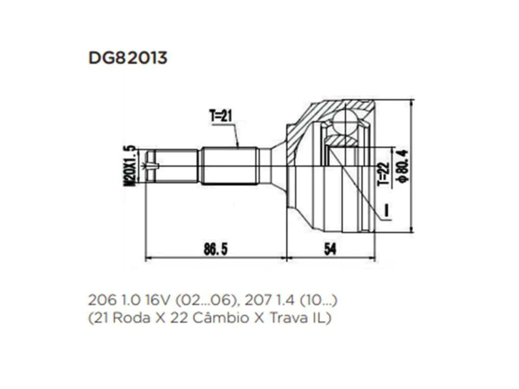 APLICAÇÃO: HOMOCINETICA 206 1.0 1.4 S/CHAVETA 22X21