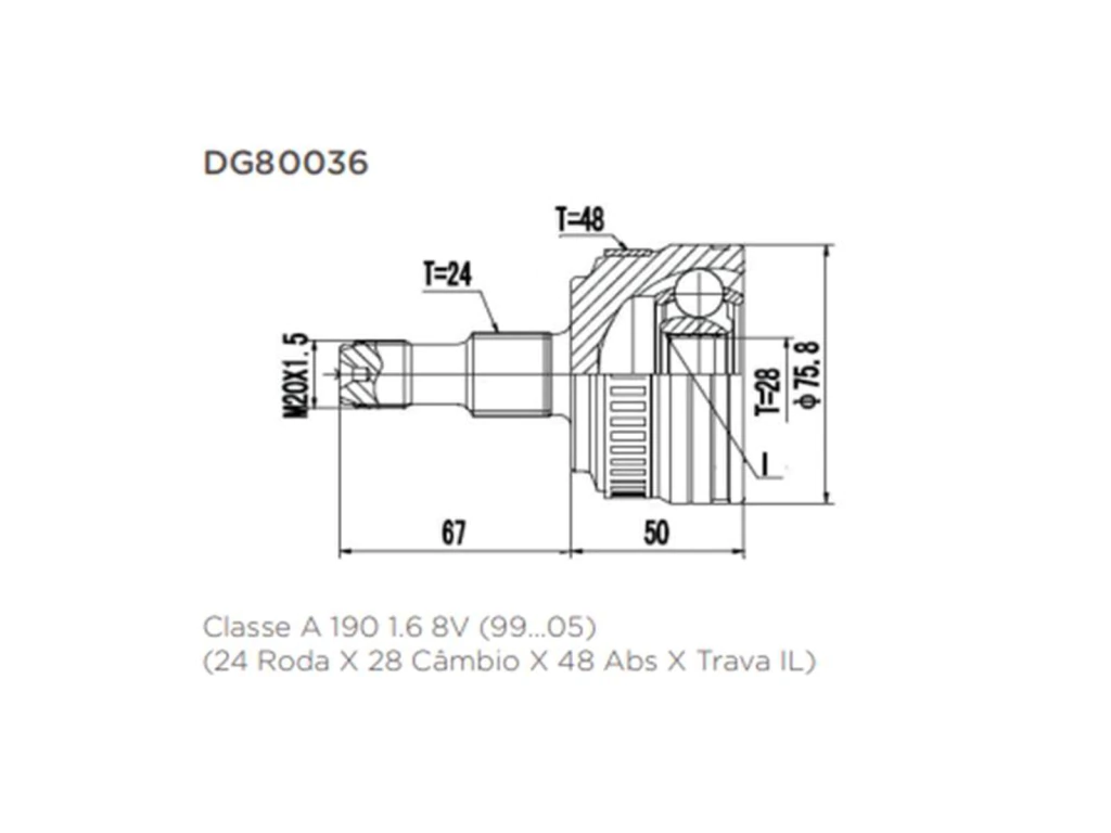 Aplicação: CLASSE A 160 190 1999/ COM ABS 24X28X48